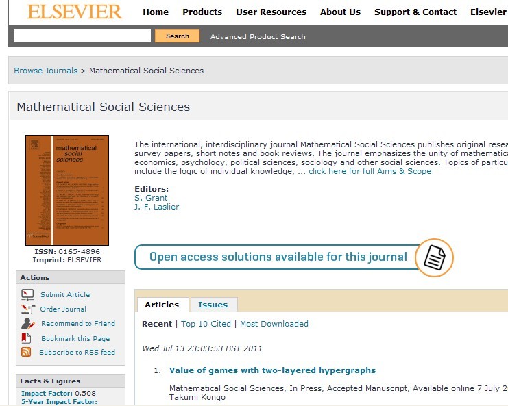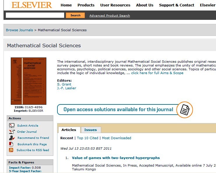 Mathematical Social Sciences 是有關(guān)有科中的頂級期刊,現(xiàn)將本中心對其投稿過程的經(jīng)歷進(jìn)行詳解,供大學(xué)交流學(xué)習(xí)之用 注冊地址如下:http://www.elsevier.com/wps/find/journaldescription.cws_home/505565/description#description |