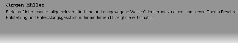 twicklungsgeschichte der modernen IT.Zeigt die wirtschaftlicDie moderne Informationstechnologie durchdringt und ver?ndert unsere Welt –?weit mehr und intensiver, als die meisten von uns?ahnen. Das Buch beschreibt ihre Entstehung,?ihre Geschichte, ihre wesentlichen Treiber?und welche herausragende Be作者: Spirometry 時(shí)間: 2025-3-22 02:41 作者: 表示向下 時(shí)間: 2025-3-22 06:58 作者: 最小 時(shí)間: 2025-3-22 10:42