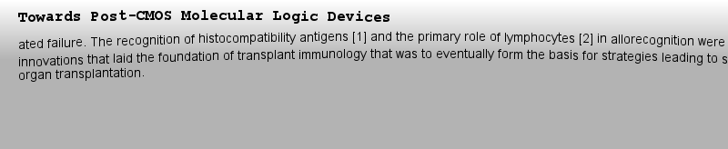 Towards Post-CMOS Molecular Logic Devicesated failure. The recognition of histocompatibility antigens [1] and the primary role of lymphocytes [2] in allorecognition were the two innovations that laid the foundation of transplant immunology that was to eventually form the basis for strategies leading to successful solid organ transplantatio作者: 散開 時間: 2025-3-23 16:02