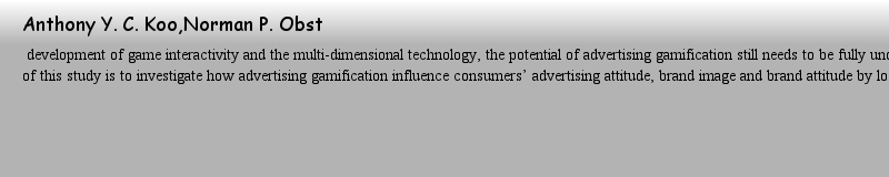 Anthony Y. C. Koo,Norman P. Obste new insights about the effectiveness of several game mechanics. Ultimately, we can also explore the importance of interactive design in the process of advertising gamification and the possibility of its application in the fields of AR.作者: 僵硬 時間: 2025-3-25 12:10