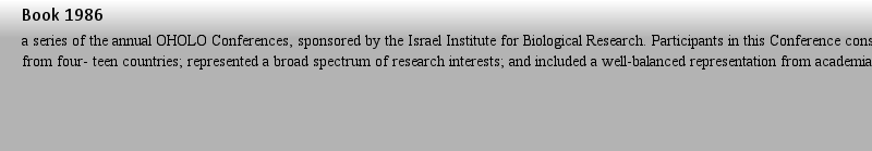 0099-6246 e 30th in a series of the annual OHOLO Conferences, sponsored by the Israel Institute for Biological Research. Participants in this Conference consisted of scientists from four- teen countries; represented a broad spectrum of research interests; and included a well-balanced representation from acade作者: 拱形面包 時(shí)間: 2025-3-30 20:45 作者: 帶來的感覺 時(shí)間: 2025-3-31 01:12 作者: stratum-corneum 時(shí)間: 2025-3-31 07:12 作者: DRAFT 時(shí)間: 2025-3-31 11:07 作者: 鐵塔等 時(shí)間: 2025-3-31 16:56
