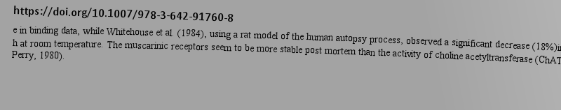 Brain Nicotinic and Muscarinic Receptors in Normal Aging and Dementiae in binding data, while Whitehouse et al. (1984), using a rat model of the human autopsy process, observed a significant decrease (18%)in Bmax after 48 h at room temperature. The muscarinic receptors seem to be more stable post mortem than the activity of choline acetyltransferase (ChAT) (Perry and Perry, 1980).作者: 依法逮捕 時(shí)間: 2025-3-30 11:38 作者: 無法破譯 時(shí)間: 2025-3-30 12:41 作者: Vo2-Max 時(shí)間: 2025-3-30 17:13