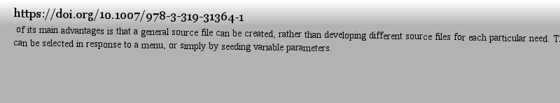 https://doi.org/10.1007/978-3-319-31364-1 of its main advantages is that a general source file can be created, rather than developing different source files for each particular need. The relevant code can be selected in response to a menu, or simply by seeding variable parameters.作者: ascetic 時間: 2025-3-30 07:41 作者: ACRID 時間: 2025-3-30 09:28