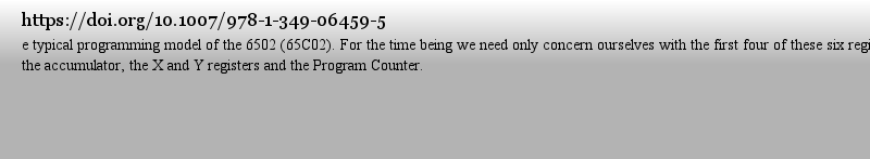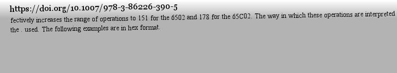 https://doi.org/10.1007/978-3-86226-390-5st 56 instructions, while the 65C02 has only 8 more instructions, for a total of 64. However, many of these can be used in a variety of ways, which effectively increases the range of operations to 151 for the 6502 and 178 for the 65C02. The way in which these operations are interpreted is determined作者: 修飾語 時間: 2025-3-29 02:32