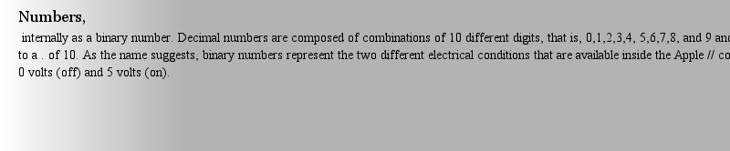 Numbers, not wishing to baffle you with the wonders of modern computer science, let’s try to simplify matters somewhat and say that each instruction is stored internally as a binary number. Decimal numbers are composed of combinations of 10 different digits, that is, 0,1,2,3,4, 5,6,7,8, and 9 and are said t作者: 偏見 時間: 2025-3-22 02:19 作者: 存心 時間: 2025-3-22 04:59 作者: VALID 時間: 2025-3-22 09:21 作者: Acetabulum 時間: 2025-3-22 15:40 作者: 沒有貧窮 時間: 2025-3-22 18:11 作者: 敲竹杠 時間: 2025-3-23 01:02