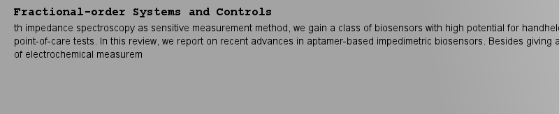 Fractional-order Systems and Controls with real-life examples and the comparison with immunoaffinity chromatography. In spite of well-advanced demonstrations and the extraordinary potential developments, a significant optimization work is still due to deserve large-scale applications with all necessary validations.作者: calumniate 時(shí)間: 2025-3-26 14:25 作者: 心胸狹窄 時(shí)間: 2025-3-26 18:12 作者: Inferior 時(shí)間: 2025-3-26 21:04 作者: 有機(jī)體 時(shí)間: 2025-3-27 03:32