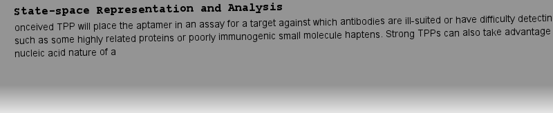 Defining Target Product Profiles (TPPs) for Aptamer-Based Diagnostics,ptamers, to produce assays with longer shelf life or special chemical properties and ability to be modified versus protein-based antibodies. The following chapter reviews the essence of well-conceived TPPs especially with respect to aptamer targets for diagnostics and illustrates several examples of commercial aptamer diagnostic success.作者: Fecundity 時(shí)間: 2025-3-28 00:30 作者: Generic-Drug 時(shí)間: 2025-3-28 02:25