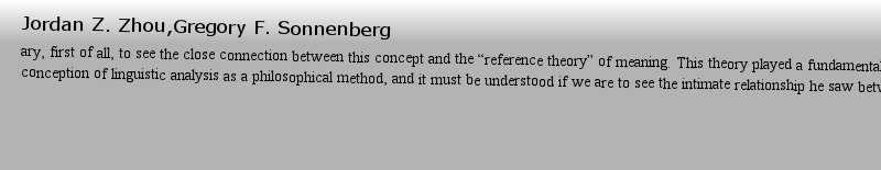 Shunyuan Xiao,Wenming Wang,Xiaohua Yangmerican philosophy, the revolution that has led many philosophers virtually to equate philosophy with some variety — or varieties — of linguistic analysis. His contributions to this revolution were twofold: (I) together with G. E. Moore he led the successful revolt against the neo-Hegelianism of Ide作者: Allergic 時間: 2025-3-24 21:58 作者: Foment 時間: 2025-3-25 02:25 作者: Osteons 時間: 2025-3-25 06:16 作者: 間諜活動 時間: 2025-3-25 07:43