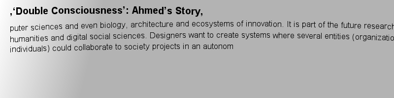 ,‘Double Consciousness’: Ahmed’s Story,ditional social systems (architectures and construction of buildings with well-defined borders, linear process of enterprises’ value chain, university or government institutions) in a multiform and multifunctional network structure, in order to increase their chances to commit to “collaborative acti作者: Merited 時間: 2025-3-23 18:27