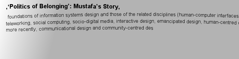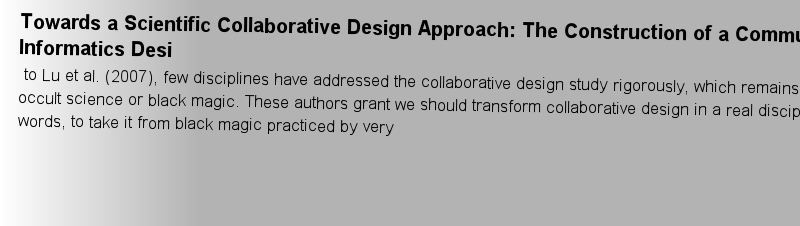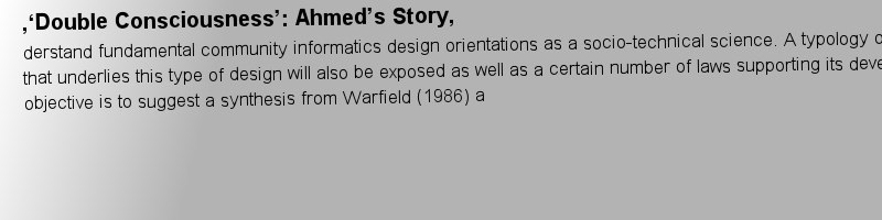 ,‘Double Consciousness’: Ahmed’s Story, to Lu et al. (2007), few disciplines have addressed the collaborative design study rigorously, which remains a field of the occult science or black magic. These authors grant we should transform collaborative design in a real discipline, in other words, to take it from black magic practiced by very作者: 無聊的人 時間: 2025-3-26 20:51 作者: Mirage 時間: 2025-3-26 23:19