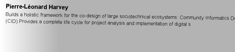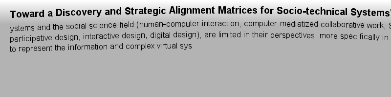 Towards a Scientific Collaborative Design Approach: The Construction of a Community Informatics Desiputer sciences and even biology, architecture and ecosystems of innovation. It is part of the future research program in humanities and digital social sciences. Designers want to create systems where several entities (organizations and individuals) could collaborate to society projects in an autonom作者: integrated 時間: 2025-3-28 06:27