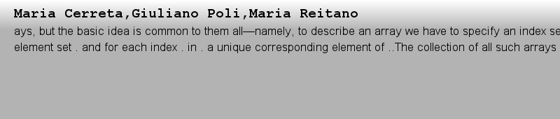 Maria Cerreta,Giuliano Poli,Maria Reitanoays, but the basic idea is common to them all—namely, to describe an array we have to specify an index set ., an element set . and for each index . in . a unique corresponding element of ..The collection of all such arrays is called .(.).作者: 六個才偏離 時間: 2025-3-23 13:51