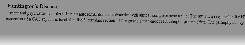 ,Huntington’s Disease,nal transport and altered synaptic transmission culminate in neuronal dysfianction and death. There is currently no way ofpreventing or slowing down the disease progression and death usually occurs at about 20 years after dia作者: extinct 時(shí)間: 2025-3-24 20:41 作者: Tartar 時(shí)間: 2025-3-25 02:45 作者: AGONY 時(shí)間: 2025-3-25 04:42