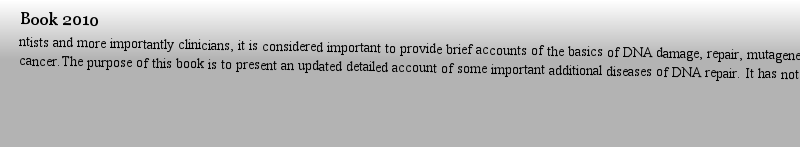 Book 2010 cover all the DNA repair deficient diseases in this volume, hence diseases such as Bloom’s syndrome, Werner’s syndrome, Nijmegen breakage syndrome, ataxia telangiectasia?like disorder, RA D 50 deficiency, RIDDLE syndrome and others will be presented in a forthcoming volume.作者: 商談 時(shí)間: 2025-3-23 17:17