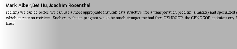 The Transportation Problemnote the number of sources and destinations, respectively; see the description of the transportation problem below). However, it would be very interesting to see what can we gain by introducing extra problem-specific knowledge into an evolution program.
