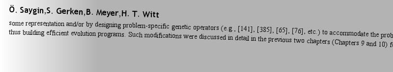 Evolution Programs for Various Discrete Problemssome representation and/or by designing problem-specific genetic operators (e.g., [141], [385], [65], [76], etc.) to accommodate the problem to be solved, thus building efficient evolution programs. Such modifications were discussed in detail in the previous two chapters (Chapters 9 and 10) for the 作者: Heterodoxy 時間: 2025-3-30 01:46 作者: FIS 時間: 2025-3-30 07:54 作者: 藕床生厭倦 時間: 2025-3-30 09:19