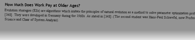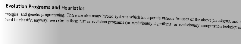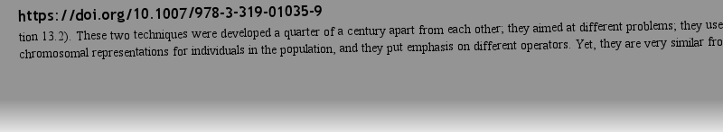 Evolution Strategies and Other MethodsEvolution strategies (ESs) are algorithms which imitate the principles of natural evolution as a method to solve parameter optimization problems [18], [348]. They were developed in Germany during the 1960s. As stated in [348]:.(The second student was Hans-Paul Schwefel, now Professor of Computer Science and Chair of System Analysis).作者: peak-flow 時間: 2025-3-26 13:41 作者: chronicle 時間: 2025-3-26 17:27