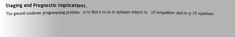 Handling ConstraintsThe general nonlinear programming problem . is to find x so as to optimize.subject to . ≥0 inequalities:.and m?p ≥0 equations:作者: 胖人手藝好 時間: 2025-3-26 11:51