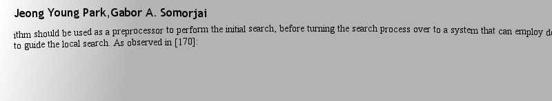 Jeong Young Park,Gabor A. Somorjaiithm should be used as a preprocessor to perform the initial search, before turning the search process over to a system that can employ domain knowledge to guide the local search. As observed in [170]:作者: Magnificent 時間: 2025-3-24 00:36 作者: keloid 時間: 2025-3-24 02:55