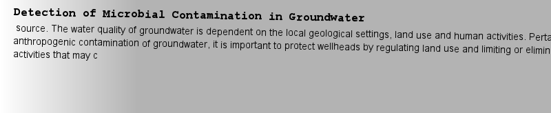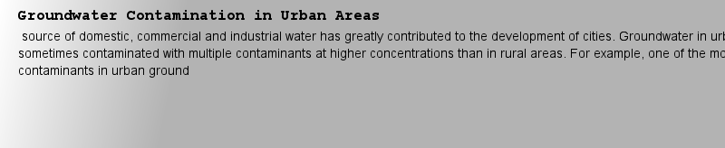 Ocular Surface Lesions in Children, source of domestic, commercial and industrial water has greatly contributed to the development of cities. Groundwater in urban areas is sometimes contaminated with multiple contaminants at higher concentrations than in rural areas. For example, one of the most prevalent contaminants in urban ground作者: 配置 時間: 2025-3-22 19:13 作者: 雀斑 時間: 2025-3-22 23:13 作者: 灰心喪氣 時間: 2025-3-23 04:07 作者: 脆弱么 時間: 2025-3-23 07:16 作者: Condyle 時間: 2025-3-23 12:10