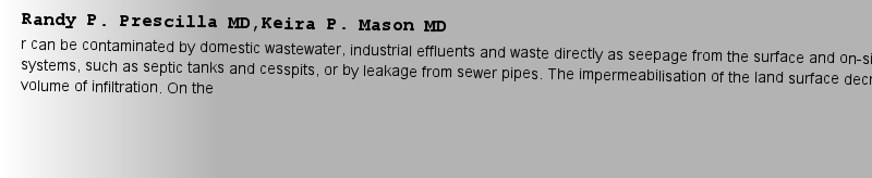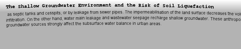 Randy P. Prescilla MD,Keira P. Mason MD as septic tanks and cesspits, or by leakage from sewer pipes. The impermeabilisation of the land surface decreases the volume of infiltration. On the other hand, water main leakage and wastewater seepage recharge shallow groundwater. These anthropogenic groundwater sources strongly affect the subsurface water balance in urban areas.作者: Tonometry 時間: 2025-3-27 11:57 作者: 大量殺死 時間: 2025-3-27 16:27 作者: 調整 時間: 2025-3-27 18:12