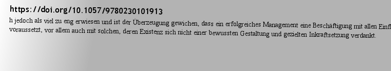 Der Kontext des Managements: Unternehmensverfassung und Unternehmensethikd durch eine Vielzahl von unterschiedlichen Rahmenbedingungen bestimmt. Dies kam ja bereits mit dem oben dargestellten Konzept von Stewart zum Ausdruck. Insofern findet Management immer in einem bestimmten Kontext bzw. einer bestimmten Umwelt statt.作者: Insubordinate 時間: 2025-3-26 15:10 作者: 向前變橢圓 時間: 2025-3-26 17:21 作者: AXIOM 時間: 2025-3-26 23:36 作者: inhibit 時間: 2025-3-27 03:41