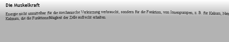 Die Muskelkraft die Kontraktion der ., der besonderen kontraktilen Elemente der quergestreiften Skelettmuskelzellen. Sie bestehen im Wesentlichen aus zwei fadenf?rmigen Proteinen, den Aktin- und den Myosinfilamenten. Durch deren spezifische Aktion, die Verkürzung, wird es m?glich mechanische Arbeit zu leisten, was作者: 音樂學(xué)者 時(shí)間: 2025-3-23 17:52