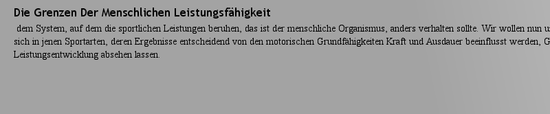 Zehn Allgemeine Grundregeln Des Trainingsgel mit ebenfalls von Menschen erlassenen Strafen sanktioniert. Diese begriffliche Identit?t von Strafgesetz und Naturgesetz verleitet manchmal dazu die Existenz von Gesetzen für das Training abzulehnen. Es wird dies als unvereinbar mit der Individualit?t der Menschen empfunden, die eben nicht ?nach Vorschrift“ behandelt werden k?nnen.作者: Genetics 時(shí)間: 2025-3-27 13:51 作者: Chagrin 時(shí)間: 2025-3-27 21:20 作者: 山崩 時(shí)間: 2025-3-28 00:27 作者: craven 時(shí)間: 2025-3-28 04:13