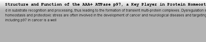Structure and Function of the AAA+ ATPase p97, a Key Player in Protein Homeostasis,erminal regulatory domain and two stacked hexameric ATPase domains forming a central protein conducting channel. p97 is highly versatile and has key functions in maintaining protein homeostasis including protein quality control mechanisms like the ubiquitin proteasome system (UPS) and autophagy to d作者: Oratory 時(shí)間: 2025-3-22 23:21 作者: 復(fù)習(xí) 時(shí)間: 2025-3-23 04:38