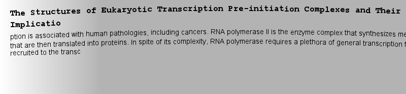 The Structures of Eukaryotic Transcription Pre-initiation Complexes and Their Functional Implicatio RNA polymerases I and III, involved in transcription of ribosomal RNA and non-coding RNAs such as tRNAs and snRNAs, and discuss the general, conserved features that are applicable to all eukaryotic RNA polymerase?systems.作者: 盡忠 時(shí)間: 2025-3-29 22:45 作者: pineal-gland 時(shí)間: 2025-3-30 01:37 作者: 熒光 時(shí)間: 2025-3-30 04:59 作者: 抱怨 時(shí)間: 2025-3-30 10:53 作者: 要素 時(shí)間: 2025-3-30 14:12
