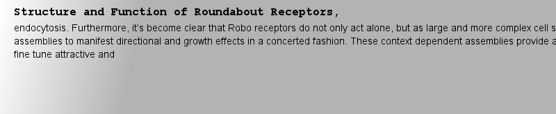 Structure and Function of Roundabout Receptors,bouts comprise a family of single-pass transmembrane receptors facilitating this process upon interaction with the soluble extracellular ligand Slit protein family emanating from the midline. Due to the complexity and flexible nature of Robo receptors, their overall structure has remained elusive un作者: 語(yǔ)言學(xué) 時(shí)間: 2025-3-23 05:46 作者: 使苦惱 時(shí)間: 2025-3-23 13:28 作者: 濃縮 時(shí)間: 2025-3-23 15:32 作者: 要求比…更好 時(shí)間: 2025-3-23 19:39
