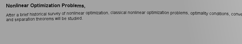 An Improvement of the Lagrange Multiplier Rule for Smooth Optimization Problems, this theory.” Here, an improvement of the sufficiency part of the Lagrange multiplier rule is presented. That is to say that a result stronger than that of Lagrange, with respect to the sufficiency part, can be proved under the same type of conditions he used, based on a different, perhaps a deeper作者: 者變 時(shí)間: 2025-3-22 18:51 作者: Fibrillation 時(shí)間: 2025-3-23 00:56 作者: AUGUR 時(shí)間: 2025-3-23 01:42 作者: spondylosis 時(shí)間: 2025-3-23 06:53
