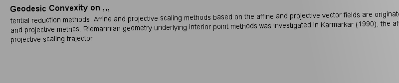 Geodesic Convexity on ,,,ctive metrics. Riemannian geometry underlying interior point methods was investigated in Karmarkar (1990), the affine and projective scaling trajectories in Bayer and Lagarias (1989/a, 1989/b) and the integrability of vector and multivector fields associated with interior point methods in Iri (1991).作者: 優(yōu)雅 時(shí)間: 2025-3-27 17:36