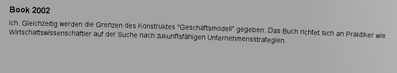 描述 | Das Wort "Gesch?ftsmodell" ist in aller Munde. Doch was verbirgt sich dahinter? Ziel dieses Buches ist es, Licht in das Dunkel zu bringen: Es versucht, Definitionen und tragf?hige Konzepte des Konstruktes "Gesch?ftsmodell" zu bieten und illustriert sie an verschiedenen Branchen- und Unternehmensbeispielen aus der Alten wie aus der Neuen ?konomie. Dabei wird ein erster Einblick in die Gestaltungsm?glichkeiten für erfolgreiche Gesch?ftsmodelle m?glich. Gleichzeitig werden die Grenzen des Konstruktes "Gesch?ftsmodell" gegeben..Das Buch richtet sich an Praktiker wie Wirtschaftswissenschaftler auf der Suche nach zukunftsf?higen Unternehmensstrategien. |