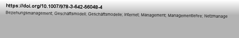 關(guān)鍵詞 | Beziehungsmanagement; Gesch?ftsmodell; Gesch?ftsmodelle; Internet; Management; Managementlehre; Netzmanage |