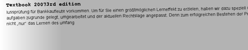 期刊全稱 | Abschlussprüfungen Bankwirtschaft, Rechnungswesen und Steuerung, Wirtschafts- und Sozialkunde | 期刊簡稱 | 24 Originalprüfungen | 影響因子2023 | Wolfgang Grundmann,Rudolf Rathner | 視頻video | http://file.papertrans.cn/144/143360/143360.mp4 | 發(fā)行地址 | 24 aktuelle Originalprüfungen geben Sicherheit für den bevorstehenden Ernstfall! | 學(xué)科分類 | Prüfungstraining für Bankkaufleute | 圖書封面 |  | 影響因子 | Die beste Prüfungsvorbereitung ist … … die Prüfung! Unter diesem Motto steht das vorliegende Buch. Es enth?lt Prüfungsaufgaben, wie sie in jeder Abschlussprüfung für Bankkaufleute vorkommen. Um für Sie einen gr??tm?glichen Lerneffekt zu erzielen, haben wir dazu speziell Originalprüfun- aufgaben zugrunde gelegt, umgearbeitet und der aktuellen Rechtslage angepasst. Denn zum erfolgreichen Bestehen der Prüfung geh?rt nicht ?nur“ das Lernen des umfangreichen und schwierigen Lernstoffes – ebenso wichtig ist, in der konkreten Prüfungssituation mit der vorgegebenen Zeit und den Aufgabenstellungen zurec- zukommen. Daher empfiehlt es sich, die Prüfungsaufgaben unter Prüfungsbedingungen zu l?sen! Der Prüfungsteil des vorliegenden Buches enth?lt jeweils sechs Prüfungss?tze zu den F?chern Bankwirtschaft Teil A – F?lle (Bearbeitungszeit 90 Minuten) Bankwirtschaft Teil B – programmierte Aufgaben (Bearbeitungszeit 60 Minuten) Rechnungswesen und Steuerung – programmierte Aufgaben (Bearbeitungszeit 60 Minuten) Wirtschafts- und Sozialkunde – programmierte Aufgaben (Bearbeitungszeit 60 Minuten) Hinter dem Prüfungsteil sind ausführliche Musterl?sungen zu allen 24 Prüfungen abgedruckt. Ihnen ist eine Pu | Pindex | Textbook 20073rd edition |