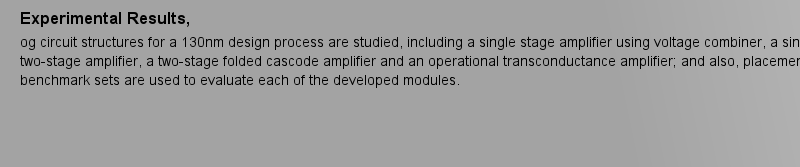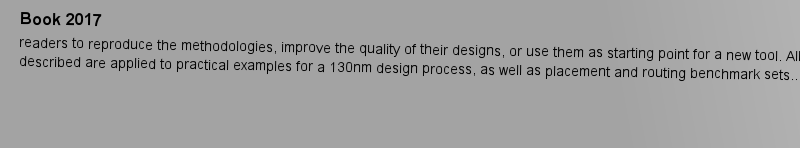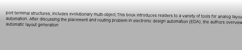 期刊全稱(chēng) | Analog Integrated Circuit Design Automation | 期刊簡(jiǎn)稱(chēng) | Placement, Routing a | 影響因子2023 | Ricardo Martins,Nuno Louren?o,Nuno Horta | 視頻video | http://file.papertrans.cn/156/155852/155852.mp4 | 發(fā)行地址 | Introduces readers to hierarchical combination of Pareto fronts of placements;.Presents electromigration-aware routing with multilayer multiport terminal structures;.Includes evolutionary multi-object | 圖書(shū)封面 |  | 影響因子 | .This book introduces readers to a variety of tools for analog layout design automation. After discussing the placement and routing problem in electronic design automation (EDA), the authors overview a variety of automatic layout generation tools, as well as the most recent advances in analog layout-aware circuit sizing. The discussion includes different methods for automatic placement (a template-based Placer and an optimization-based Placer), a fully-automatic Router and an empirical-based Parasitic Extractor. The concepts and algorithms of all the modules are thoroughly described, enabling readers to reproduce the methodologies, improve the quality of their designs, or use them as starting point for a new tool. All the methods described are applied to practical examples for a 130nm design process, as well as placement and routing benchmark sets.. | Pindex | Book 2017 |