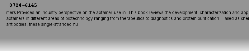 Titlebook: Aptamers in Biotechnology; Katharina Urmann,Johanna-Gabriela Walter Book 2020 The Editor(s) (if applicable) and The Author(s), under exclu |
