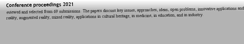 Titlebook: Augmented Reality, Virtual Reality, and Computer Graphics; 8th International Co Lucio Tommaso De Paolis,Pasquale Arpaia,Patrick Bo Conferen |