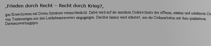 Gerechter Frieden als Orientierungswissen der Analyse der Medienkommunikation ausdrücklich r?umliche, zeitliche, situative und soziale Konstellationen. Für deren Fragestellungen bieten beide Verfahren und die Adaption ihrer Auswertungsmethoden die M?glichkeit der Dynamik und Vielschichtigkeit des Forschungsgegenstands Rechnung zu tragen un