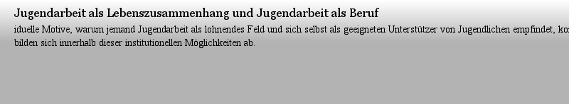 期刊全稱 | Beziehungen in der Jugendarbeit | 期刊簡稱 | Untersuchung zum ref | 影響因子2023 | B?rbel Bimschas,Achim Schr?der | 視頻video | http://file.papertrans.cn/186/185375/185375.mp4 | 圖書封面 |  | 影響因子 | Das Buch greift ein Thema auf, das die allt?glichen Erfahrungen und Probleme der Jugendarbeit durchzieht und meistens mit dem Schlagwort "Beziehungsarbeit" belegt wird. Hinter der gro?en Relevanz der Beziehungsgestaltung ist allerdings die Jungendarbeitstheorie bisher weit zurückgeblieben. Noch heute wird oft auf die Theorie des "p?dagogischen Bezugs" von Nohl rekurriert - moderne Beschreibungen adoleszenter Ambivalenzen fehlen dagegen weitgehend. Die Stiftung Deutsche Jugendmarke hat aus diesem Grund eine zweij?hrige Studie zum Thema erm?glicht. In der Zusammenarbeit zwischen Jugendarbeitsforscher/innen und Psychoanalytiker/innen wurde empirisches Material interpretiert, das im wesentlichen aus Supervisionen mit Jugendarbeiter/innen aber auch aus Gruppeninterviews mit Jungendlichen bestand. Das Buch stellt die Erkenntnisse aus der empirischen Arbeit jeweils im Kontext der für die Jungendarbeit zentralen Themen dar: stellvertretende Abl?sung, Vorbilder und Geschlecht, Jugendarbeit als Lebenszusammenhang und als Beruf, Offenheit und Halt, Intuition und Reflexion. | Pindex | Book 2003 |