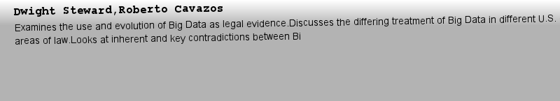 Titlebook: Big Data Analytics in U.S. Courts; Uses, Challenges, an Dwight Steward,Roberto Cavazos Book 2019 The Author(s), under exclusive license to |
