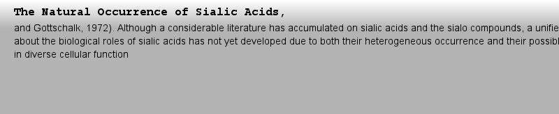 期刊全稱 | Biological Roles of Sialic Acid | 影響因子2023 | Abraham Rosenberg,Cara-Lynne Schengrund | 視頻video | http://file.papertrans.cn/188/187464/187464.mp4 | 圖書封面 |  | 影響因子 | There is a startling amount of research activity concerning the role of sialic acid in mammalian cells and in the mammalian organism. One may discern in the early literature premonitions of compounds containing sialic acid, traceable by descriptions of color reactions, as far back as the turn of the century. Work spanning the 1930s to the 1950s culmi- nated in the crystallization of sialic acid from a wide variety of biological materials. The ubiquitous nature of the sialic acids, and the biological importance of the substances in which they occur, then became generally manifest. Since then, the chemistry and metabolism of sialic acid and its occurrence, notably, but not exclusively, in the outer cell surfaces of mammalian cells and in key extracellular glycoproteins, have received great attention. The involvement of sialic acid-containing substances in tumorigenicity and in numerous metabolic and infectious pathological conditions, and in the growth, development, and integrity of mammalian cells has achieved widespread recognition. Intensive inquiry into the biological roles of sialic acid continues in a large number of research laboratories throughout the world. This book is inte | Pindex | Book 1976 |