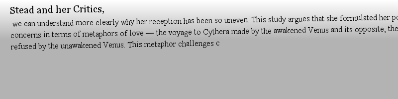 Titlebook: Christina Stead; Diana Brydon Textbook 1987Latest edition Diana Brydon 1987 Bronte.Charlotte Bronte.fiction.Jane Austen.novel.Victorian er |