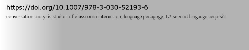 Titlebook: Classroom-based Conversation Analytic Research; Theoretical and Appl Silvia Kunitz,Numa Markee,Olcay Sert Book 2021 Springer Nature Switzer |