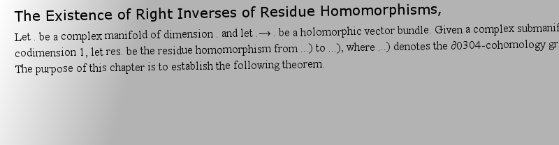 Wissenschaft und Verantwortung,Let . be a complex manifold of dimension . and let .→ . be a holomorphic vector bundle. Given a complex submanifold . of codimension 1, let res. be the residue homomorphism from ...) to ...), where ...) denotes the ?0304-cohomology group of type (.). The purpose of this chapter is to establish the following theorem.