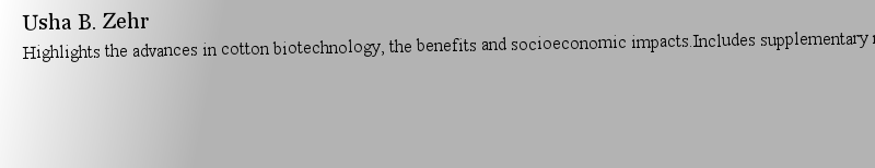 書目名稱 | Cotton | 副標(biāo)題 | Biotechnological Adv | 編輯 | Usha B. Zehr | 視頻video | http://file.papertrans.cn/240/239031/239031.mp4 | 概述 | Highlights the advances in cotton biotechnology, the benefits and socioeconomic impacts.Includes supplementary material: | 叢書名稱 | Biotechnology in Agriculture and Forestry | 圖書封面 |  | 描述 | The food, feed, ?ber, and fuel needs of the changing world pose the challenge of doubling or tripling of world food, feed, and ?ber production by the year 2050 to meet the needs of a 11 billion global population. In addition, the dramatic changes in food prices in the recent years further warrant that production and productivity need to be enhanced to ensure adequate supplies. Biotechnology can make a signi?cant contribution to this effort as demonstrated by cotton and other crops; the new advances in biotechnology have made it possible to develop plants that contain genes that were not possible to be developed by sexual means. Cotton has been a leader in the use of biotechnology. With the introduction of Bt cotton, followed by stacked cotton products (insect and herbicide tolerance) and extensive use of molecular breeding tools, cotton cultivation has been much improved. The contributions in this book illustrate the scienti?c advances that are going on in cotton and the impact they continue to deliver for all cotton growers. Twelve percent of the global cotton area is now under biotech products at 15. 5 million ha. The primary bene?ts from using genetically engineered cotton inclu | 出版日期 | Book 2010 | 關(guān)鍵詞 | Bt cotton; biotechnology; cotton; cotton biotechnology; cotton genomics; genetically modified plants; plan | 版次 | 1 | doi | https://doi.org/10.1007/978-3-642-04796-1 | isbn_softcover | 978-3-642-26226-5 | isbn_ebook | 978-3-642-04796-1Series ISSN 0934-943X Series E-ISSN 2512-3696 | issn_series | 0934-943X | copyright | Springer-Verlag Berlin Heidelberg 2010 |