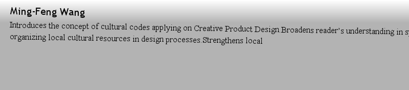 Titlebook: Creative Product Design With Cultural Codes; Ming-Feng Wang Book 2022 The Editor(s) (if applicable) and The Author(s), under exclusive lic |
