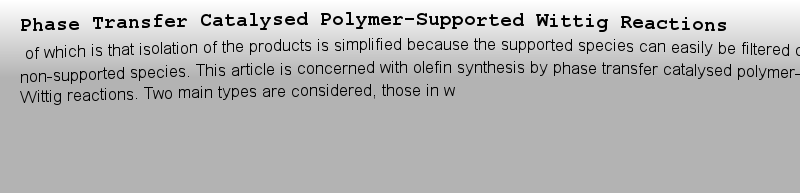 Chemical Modification of Chloromethylated Polystyrene with Phosphine Oxides Using Phase-Transfer Catlogy .. Chemical modification is an important procedure for the preparation of polymeric reagents. Phase transfer catalysis which has been widely used in organic chemistry, has found an increasing number of applications in the chemical modification of polymers having reactive functional groups, over
