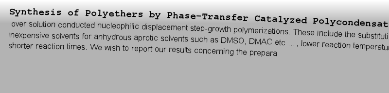 Phase Transfer Free Radical Reactions:1 Polymerization of Acrylic Monomersques of PTC have been concerned for the most part with the transfer of anionic reagents between two immiscible phases for subsequent nucleophilic reactions, the concept is believed to be much more general.. Recently, for instance, a few examples describing extension of the process to cationic (elect